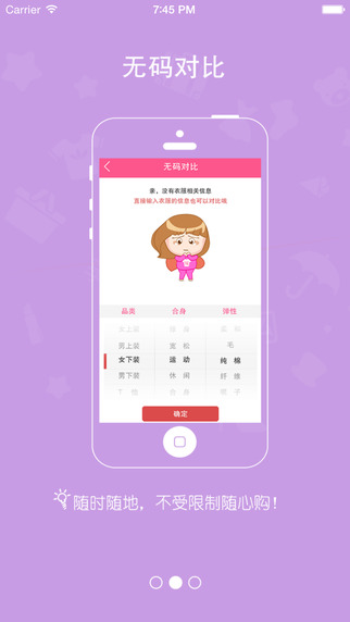3 简单选定衣服品类、版型和弹性,随时随地给出合身尺寸,解决无法试衣烦恼!想给亲朋好友购衣?有“衣拍即合”线上线下都购了;