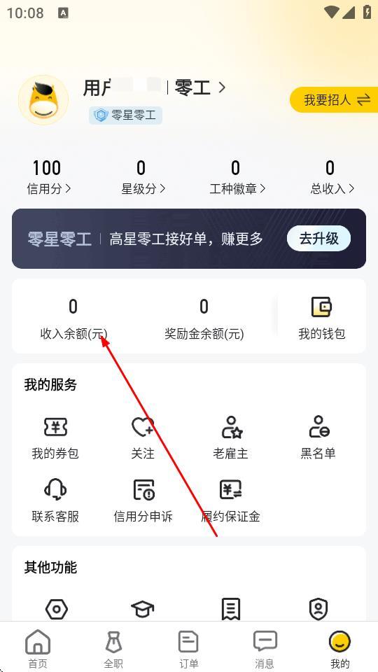 3、在我的页面,点击收入余额选项。