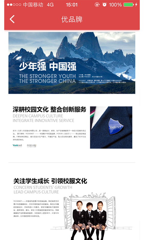 1.专属唯一:学校专属的、唯一的移动校服订购商城,包含本校全品系产品,学生可自由选择、自由搭配。