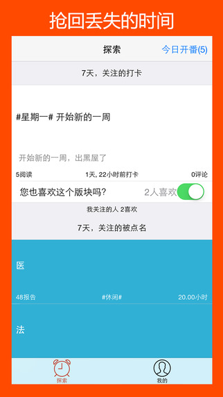 知行养成社区iPhone版是一款帮助用户利用好当下每一秒的自我管理软件,做事情的时候不专心,总想开小差?知行养成社区来帮你,这里提供番茄倒计时,每25分钟就是一个番茄,在这段时间内,你要高度专注于规定的任务,这样的设计可以帮你进行自我管理,不让你因为白白虚度了一段时光而后悔。同时你也可以查看其他用户的番茄情况,激励自己坚持下去!