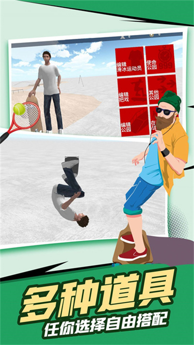 2、操作非常自由,控制滑板运动员的动作,进行各种技巧的组合,展示自己的滑板技术;