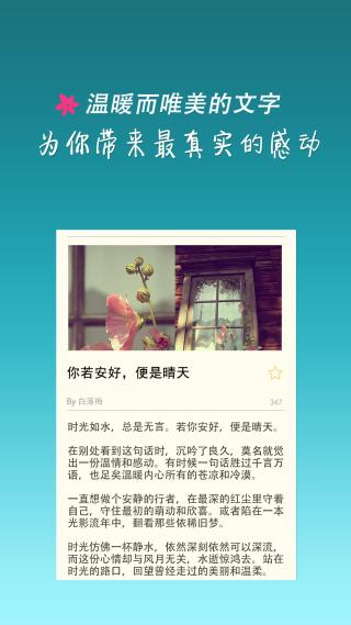 ◆提供温暖而又唯美的文章,触碰心底最柔软的部位,带来最真的感动;