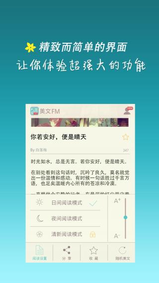 ◆美文FM是一款完全免费的个性化美文阅读软件;