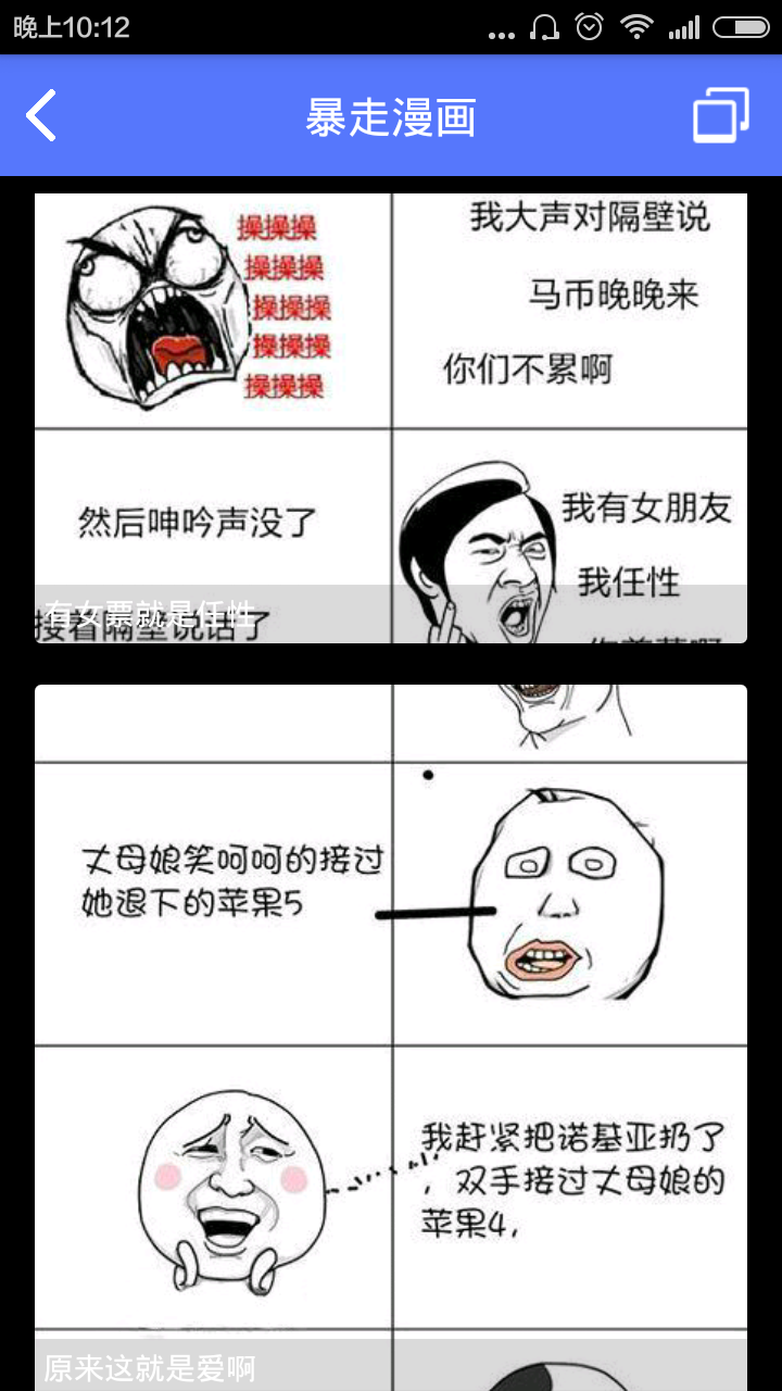 暴走节操,是一款搞笑图片的娱乐软件。涵盖了内涵趣图、动态图、可爱萌宠、搞笑PS、暴走漫画等有趣图片,搭配神一样的文字,让你感受无限快乐,为你单调的生活增添色彩。