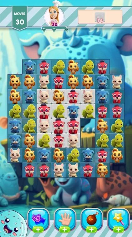 2、有的关卡要求在有限的步数内消除指定数量的动物,有的关卡要求玩家在规定时间内达到一定的分数;