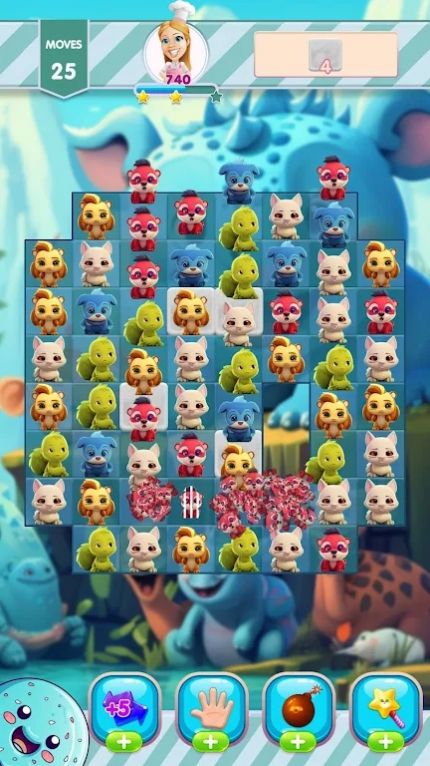 2、消除的动物图案会根据消除的数量和连击数给予玩家相应的分数奖励,提高游戏的游玩性;