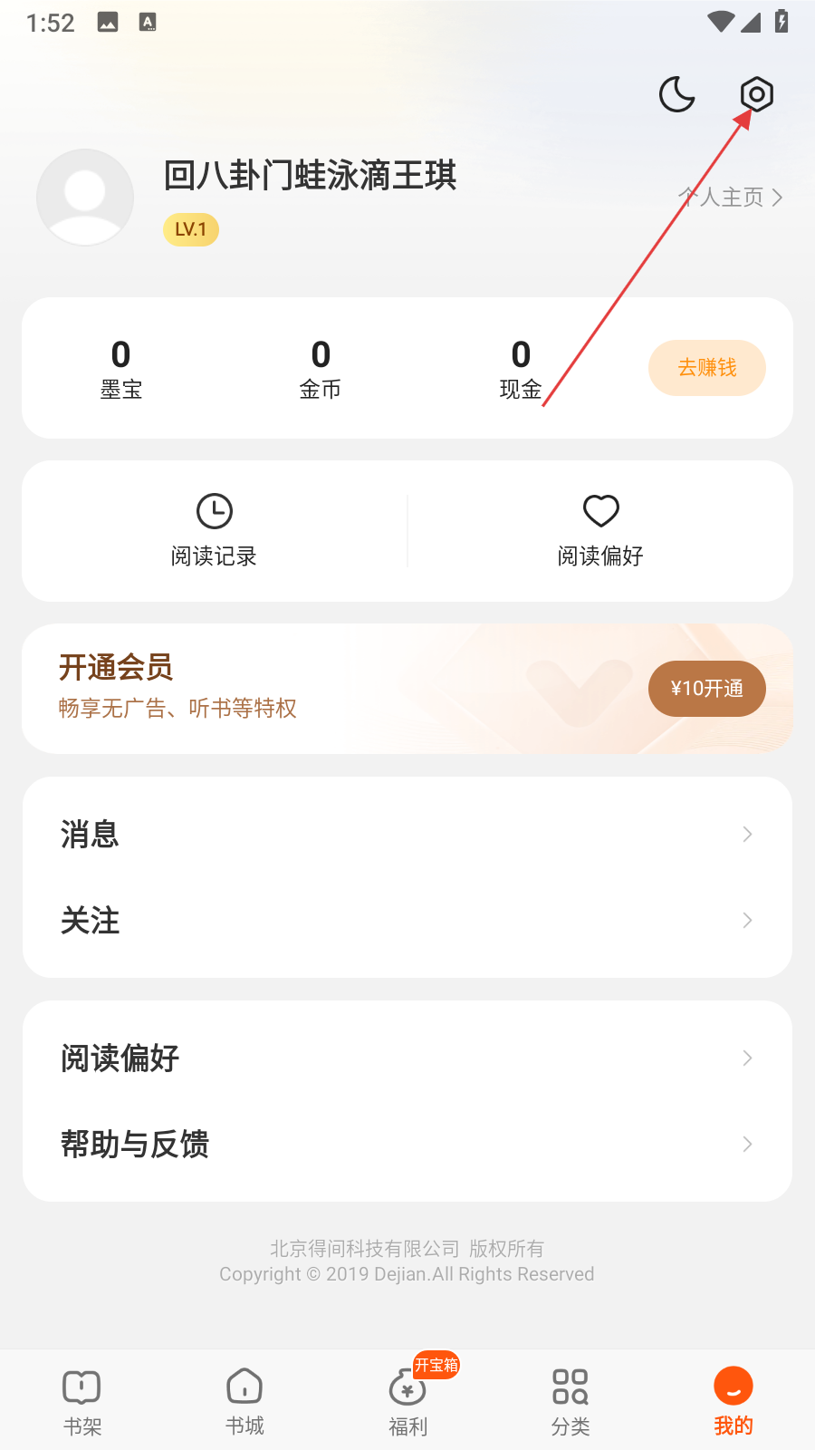 2、在个人页面中,点击右上角的设置图标,进入设置界面。