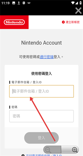 4、在进入到任天堂登录页面中,点击输入框填写邮箱和登录按钮后,即可完成登录操作。