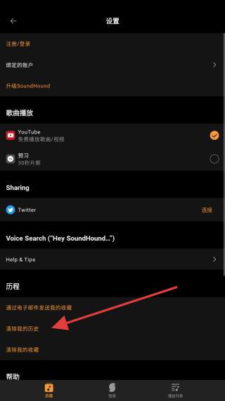 3、进入设置界面后,向下滑动找到并点击清除我的历史选项。