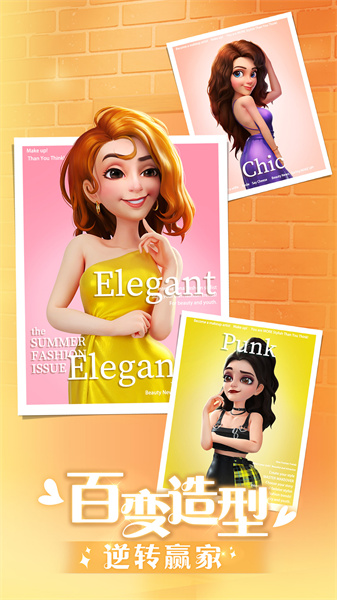 -百变造型:玩家可以通过畅快的三消游戏收集道具和金币,成为美妆达人,为嘉宾打造百变妆容。可以进行多种唇妆眼妆组合,定义自己的时尚形象,搭配海量发型服装。