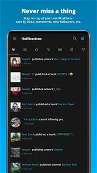 artstation app是一款专门展示不同国家用户创意作品的软件,能互相交流绘画方式以及学习方式,增强对于艺术品的感知,能更加快捷的交流学习,对于用户能力的提高有更多的帮助,并且能学习技巧,满足自己的需求,也能增加自己的灵感,创作更优质的作品。