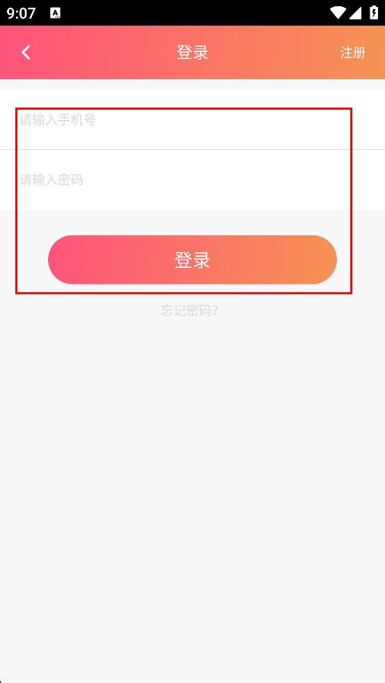 4、在手机登录输入页面,依次在对应的输入框中输入手机号和密码,输入完成后,点击“登录”按钮,即可尝试登录软件。