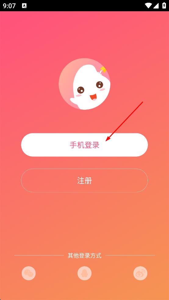 3、在登录注册选择界面里,找到“手机登录”按钮,点击该按钮,进入到手机登录的输入页面。