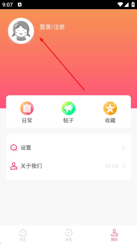2、在个人页面中,找到“登录/注册”区域,点击该区域,进入到登录注册的选择界面。