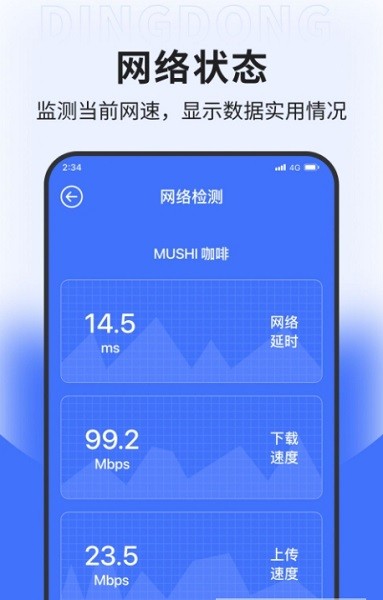 叮咚上网助手app是一款优质的网络体验工具,协助手机的无线网络和有线网络都非常快速稳定,并且能保障每个用户网络的安全性,同时可以增强移动网络的强度,让信号能更加稳定,同时软件会长期检测网络是否安全,保障手机的高效运行过程,并且能制定多种使用方案,每天查看最新的天气数据,非常方便,可以保障当天的身体数据安全,时刻检测心率是否正常,让自己的身体更加健康。