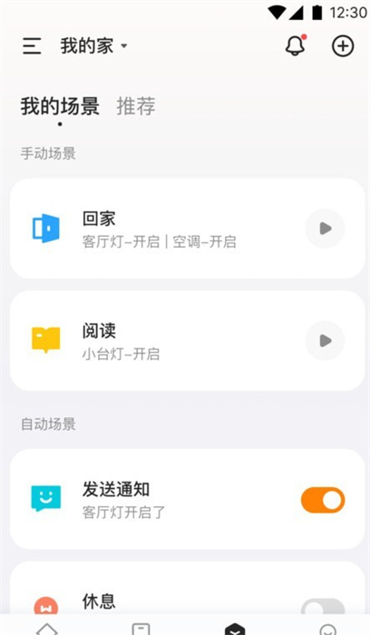 2、自定义家庭模式,根据不同场景和需求,调整各个智能设备的状态;