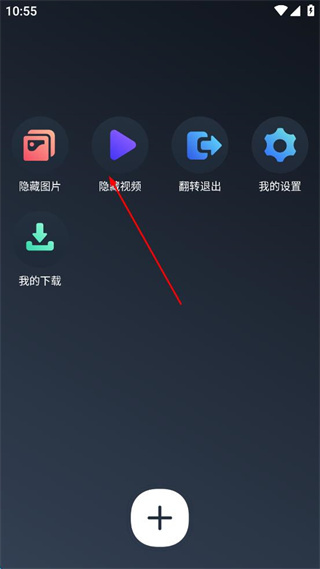 3、在隐藏视频页面,点击右下角的加号按钮,触发添加视频的选择界面。
