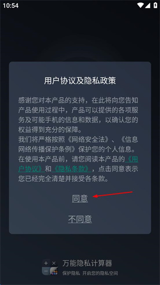 1、在软件弹出的用户协议及隐私政策弹窗中,点击同意按钮,进入主界面。
