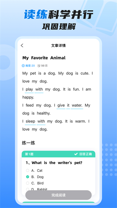 1、 精准显示阅读能力值,每篇文章都能看到能力值变化