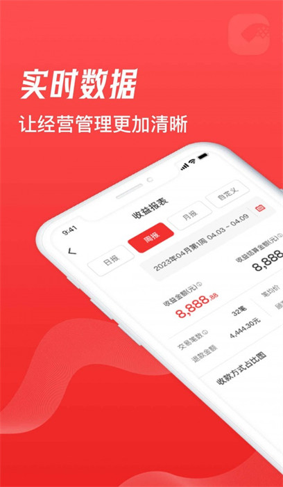 2、实时数据分析,查看销售趋势、盈利率、客流量等重要数据;