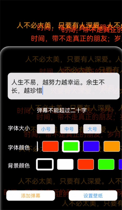 3、用户自定义字体颜色和大小,在壁纸上添加个性化的字体信息。