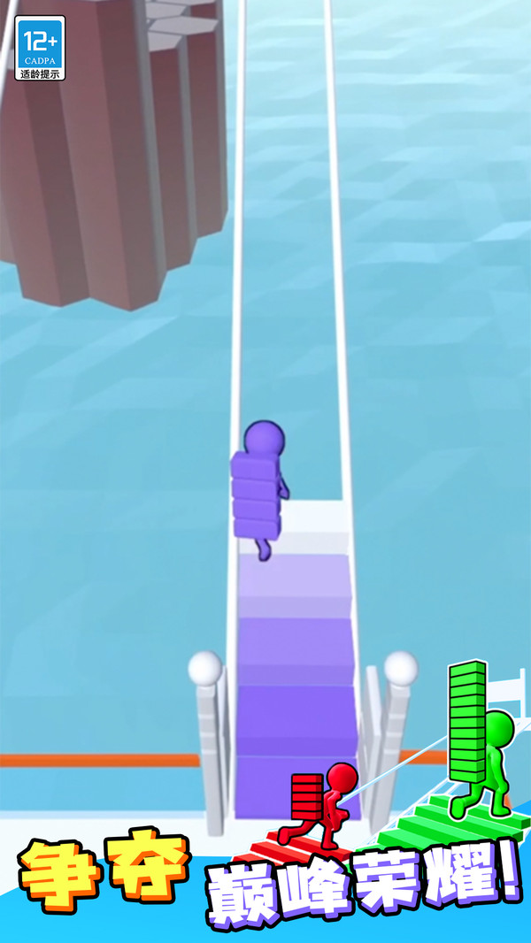 1、首先玩家需要去收集积木并且搭设桥,你要和其他的竞争者去争夺场上所有的积木,并且来建设出自己的桥;