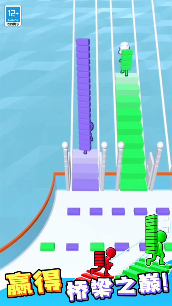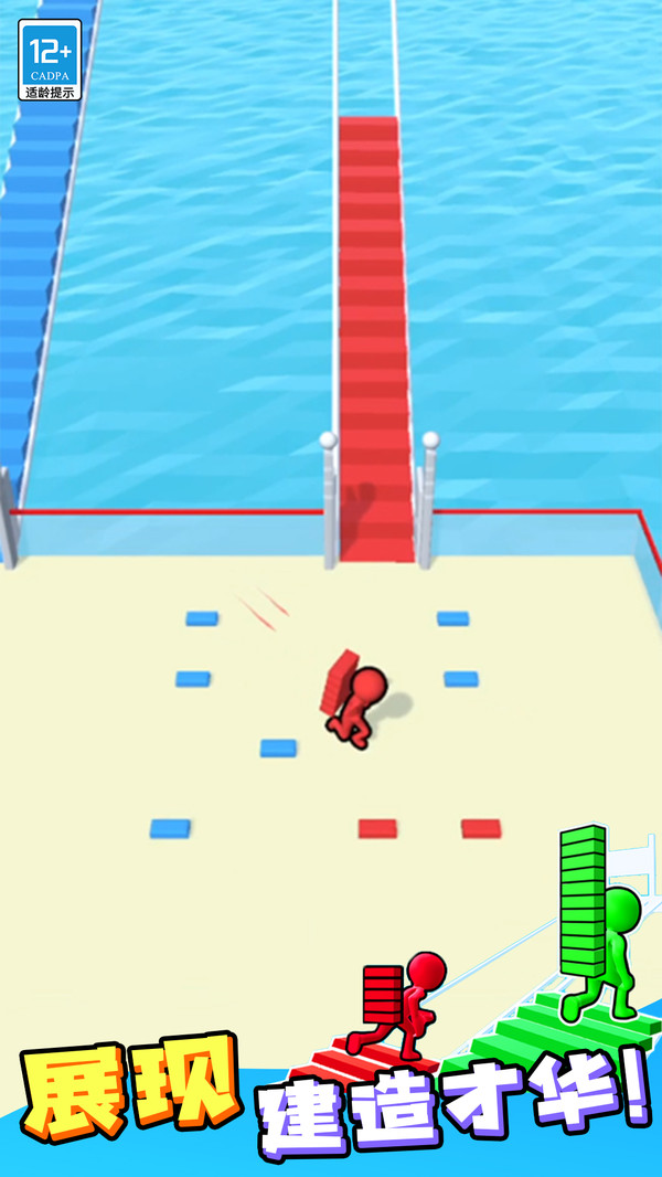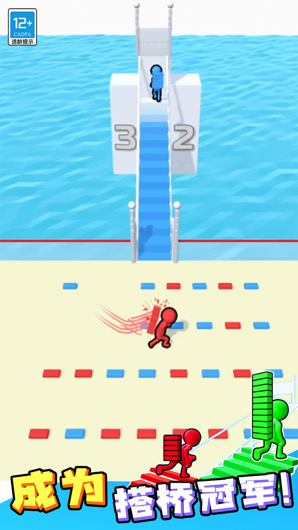 搭桥冲冲冲游戏是一款非常有趣味性的一款休闲竞技小游戏,可以出让玩家在欢声笑语还有紧张刺激中去体验搭桥的魅力,在这里面你将会参加搭配非常激烈的战争,可以和别的玩家去一较高下比一比谁最厉害,玩家要去争夺积木并且去建设出独一无二的桥梁。