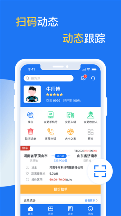 实时推送:app会为司机实时推送货源信息,以便你随时随地接单。