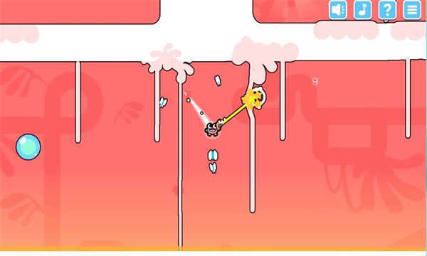 1、点击屏幕来发射绳索,并巧妙地摆荡,以吞下美味的食物,并战胜每个级别的挑战;