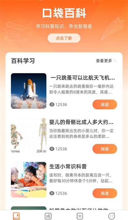 口袋智慧星app是一款可以增加用户学习兴趣的软件,通过多种学习方式学习和挑战让用户更加喜欢游戏,且能看到更优质的效果,能在生活当中学习到多种类型的知识,并且每天都会更新知识,让用户更加喜欢这些,同时能学习到很多国学知识,让用户能快速学习,感受真实的兴趣爱好,满足用户的学习,包含大量测验以及真实的学习过程,让用户更加流畅的使用软件,掌握更多的知识。