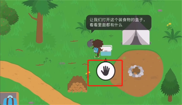 3、迅速的找到人类的营地之后,玩家需要看看人类的营地之中有什么食物可以获取,点击小手的标志即可;