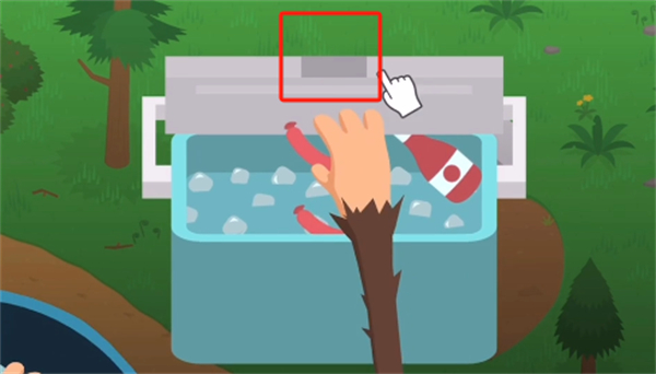 4、此时玩家将可以拿起人类的背包,需要点击屏幕之中红色看看内的位置来进行背包的开启,此时即可进行食物的拿取。