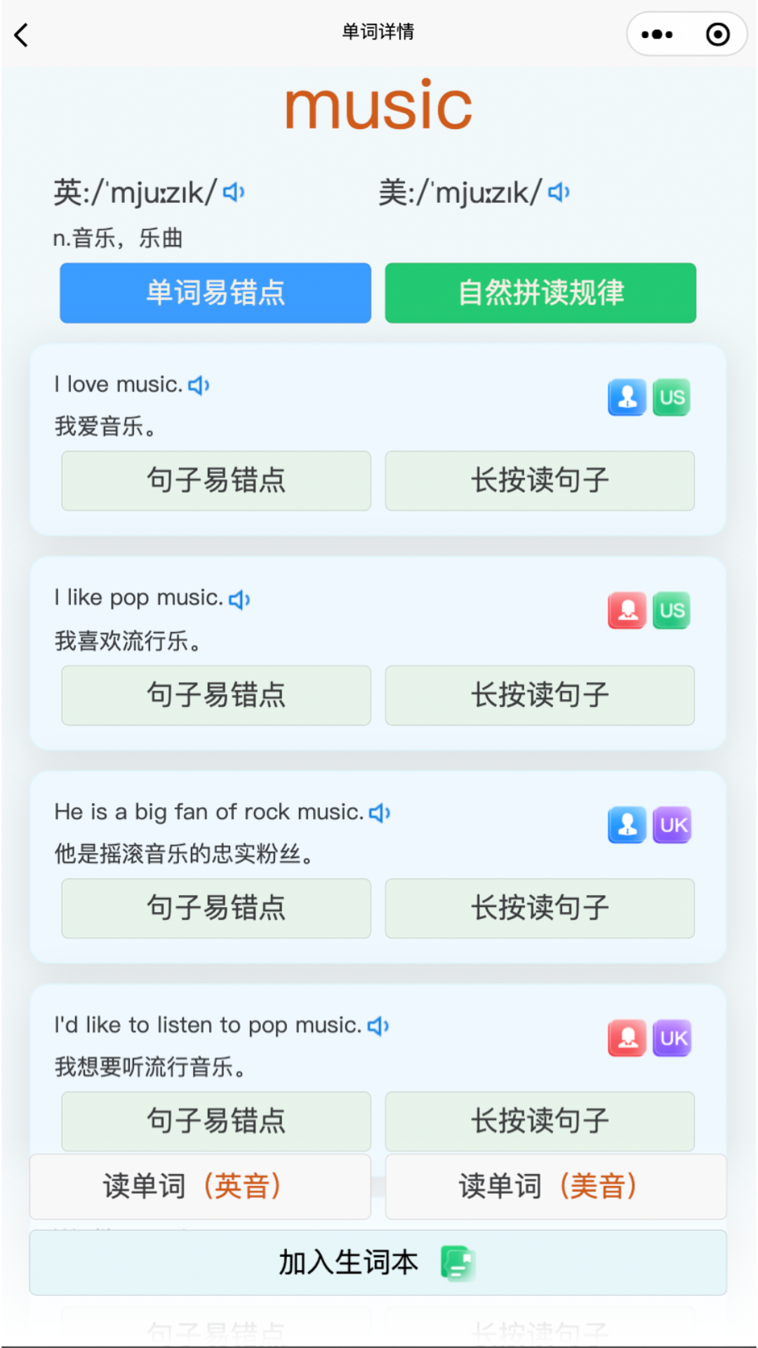 【单词和句子发音易错点】本软件总结了所有的口语中易读错的单词,让您轻松避免口语中容易读错的单词或者句子。并且本软件也提供了易错点查询,如果您准备面试或者考试,只需要把您的材料输入本软件,就会立刻告诉您所有易错点,助力你的成功!