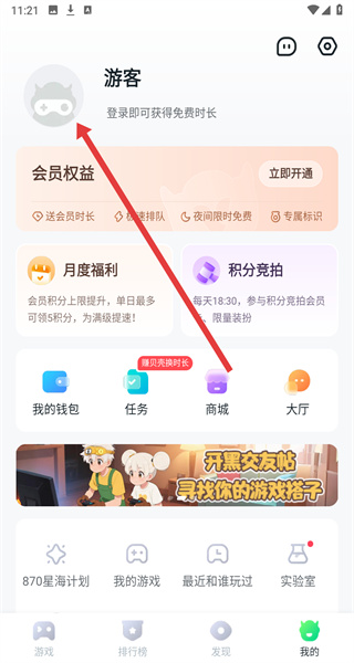 2、在进入到我的主页中,可以点击头像区域后,准备开始进行登录操作。