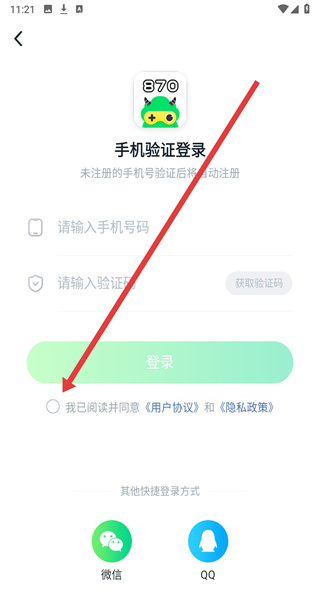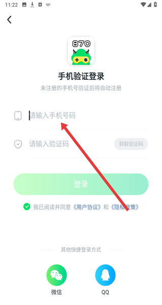 4、勾选好同意按钮后,可以在上方输入框中填写手机号码,在获取验证码后填写即可完成登录。