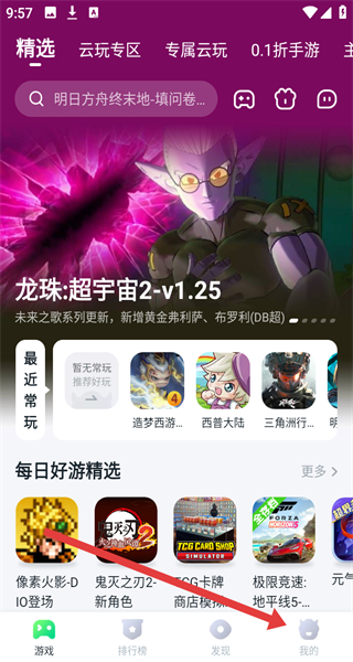 1、进入到应用首页后,可以点击下方排行榜按钮,进入查看最新游戏。