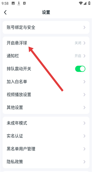 3、在设置页面中,找到并点击开启悬浮球选项,进行设置。