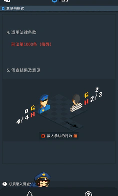 律法之地安卓版是一款调查案件主题的游戏,玩家将会在游戏中化身为一个警察,需要调查游戏中发生的八个案件的卷宗,这些卷宗详细的叙述了案件的发生过程以及一些案件的细节,玩家需要好好的分析这些卷宗,最终写出一个合适的调查有意见和结果出来,惩治最终抓住的犯人,给他应有的惩罚。