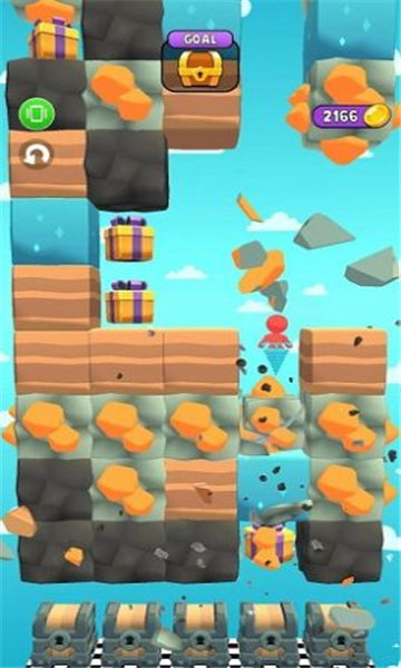 5、玩家需要小心躲避各种障碍物,如岩石、陷阱等,否则会受到伤害或无法继续挖掘;