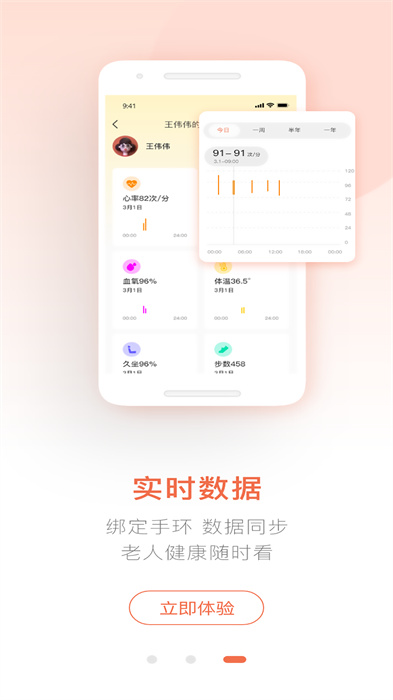 聊养app是一款专门帮助老年人设计的手环辅助软件,能在直接通过软件查看到现在的心率、血压等等分析,能给用户定制专属的健康计划,并且每天记录老年人当天的运动情况和饮食,需要全面注意整体的服务和提醒,随时照顾老年人的生活,并且可以随时提示身体异常。