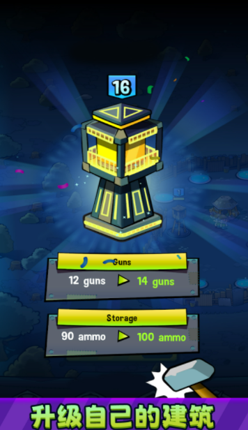 2、收集金币和资源来升级自己的塔楼,增强防御能力和生存能力,还可以解锁更多的功能和特殊技能;