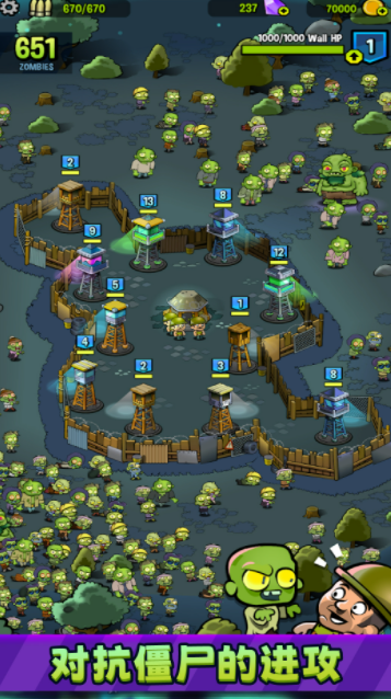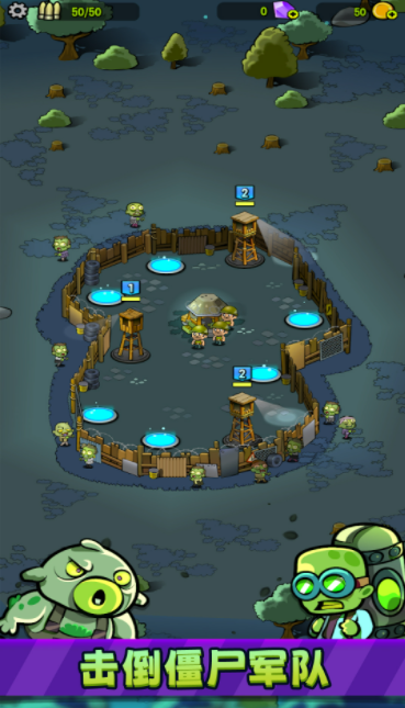 2、通过收集金币和资源来寄养僵尸军队,这些僵尸军队为玩家提供额外的帮助,增加战斗力和生存能力;