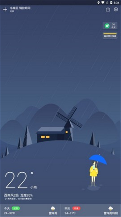 24h趋势:能够展示未来24小时的天气趋势,以便随时知晓天气动态。