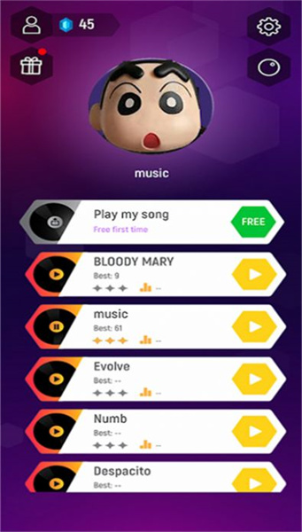 蜡笔小新瓷砖跳跃游戏是一款热门的闯关游戏,也叫Crayon Shin-Chan Tiles Hop,玩家在关卡里面操作蜡笔小新进行游玩,在关卡里面随着音乐的节奏来点击屏幕的音符即可,不断的提升玩家的连击次数可以得到大量的分数,完成不同的关卡,快来尝试下。