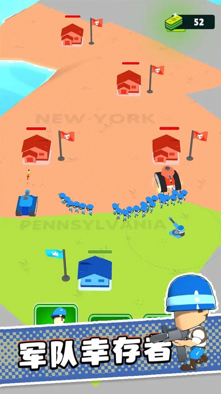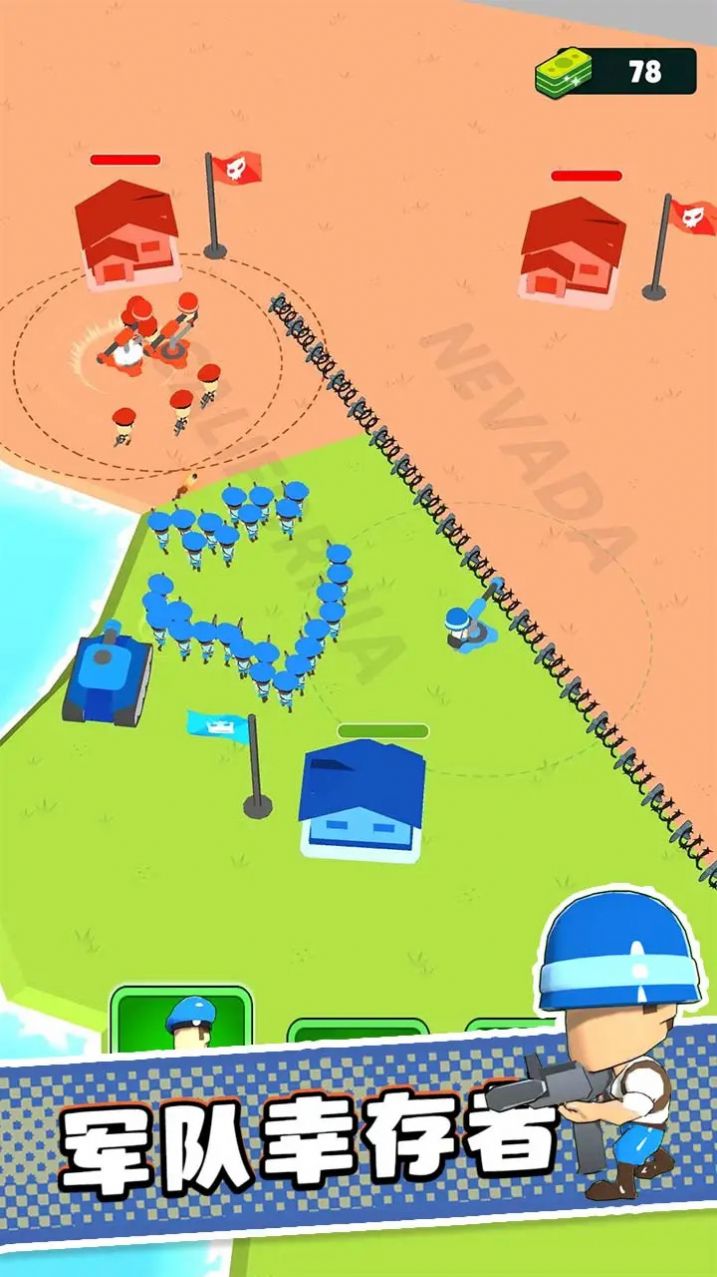 军队幸存者游戏是一款非常有趣的休闲射击游戏,玩家们在游戏中操控自己的军队来进行战斗,玩家们需要在地图的各个地方来收集材料,合理的运用自己收集的材料来制造自己的庇护所以及武器装备,有了武器和装备才能成功战胜敌方,游戏内还有其他的幸存者,玩家们可以招揽别的幸存者一起组建一个更加强大的队伍,不断地壮大自己的军队,这样别人就不敢轻易的进攻你的队伍了,游戏的画质做的也是非常的不错,很多细节也很到位,游戏的玩法和模式也是非常多的,比如最经典的剧情模式以及挑战模式,如果想和朋友们一起玩,没问题我们还推出了联机模式,在联机模式里,玩家们可以自由的和朋友们对战。