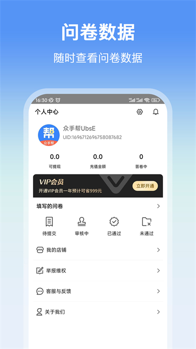 众手帮app是一款非常好用的问卷调查数据填写统计软件,这款软件为用户提供了参与各种问卷调查的机会,通过它,我们可以回答各种有趣的问题,分享自己的观点和意见,同时问卷调查的范围涵盖了各个领域,总有一个适合你。