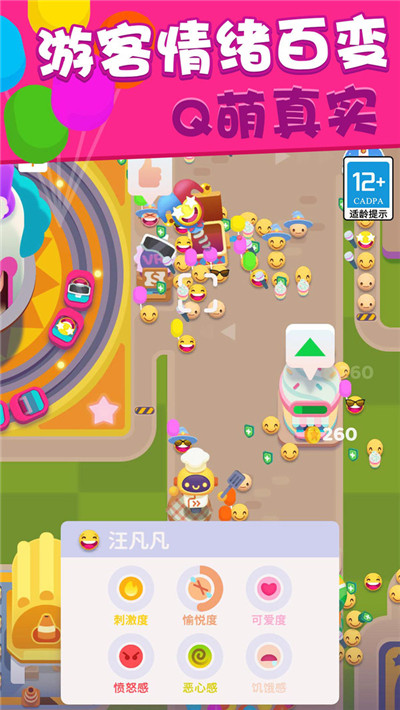 - 游客的快乐程度直接影响他们在游乐场的停留时间和消费金额,因此玩家需要好好经营。