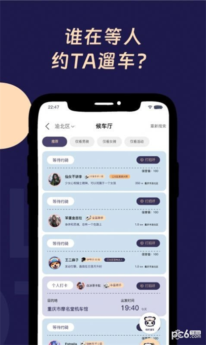 地域聚焦:根据用户所在的地区进行地域聚焦,方便你找到身边的摩友,一起出发探险。