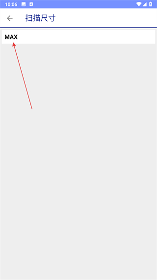4、在扫描尺寸界面中选择MAX选项,完成扫描尺寸的更改操作。