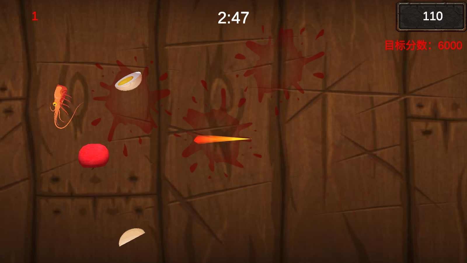 3、切割水果的过程中,玩家需要小心炸弹,一旦切中炸弹,游戏将立即结束挑战失败;